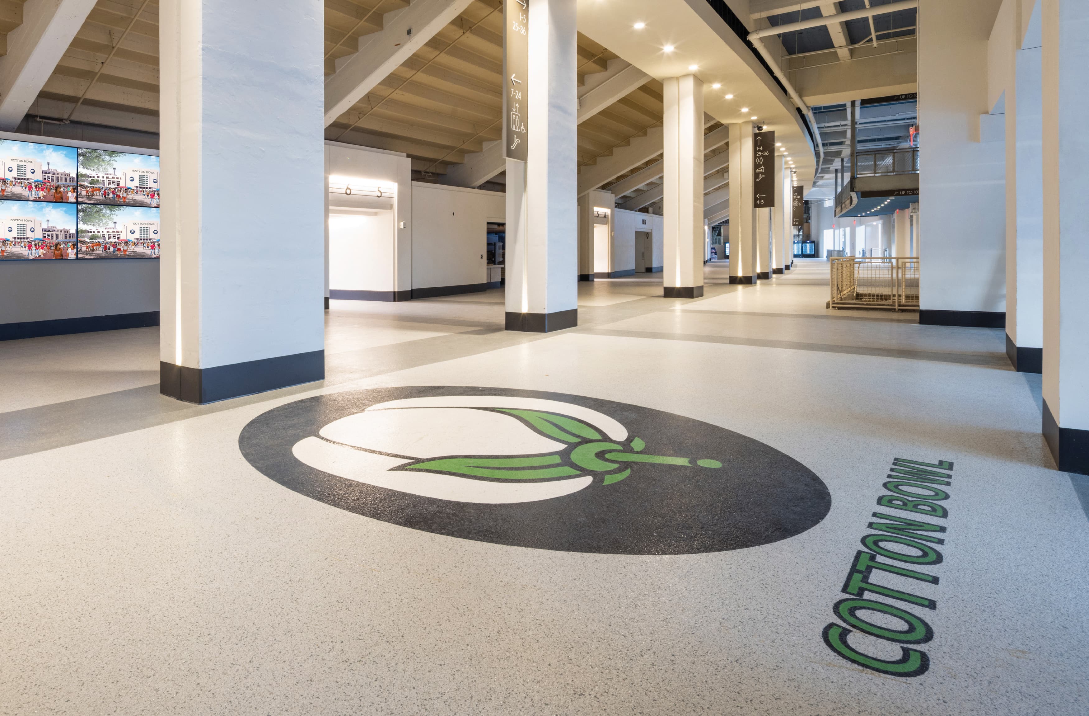 The Cotton Bowl Stadium rises from the center of Fair Park as a landmark shaped by nearly a century of Dallas history. Opening in 1930 as Fair Park Stadium, it first welcomed 45,000 fans cheering on the SMU Mustangs beneath its distinctive art deco facades. As North Texas grew, so did the stadium—expanded and updated through decades of renovations until it became the 90,000+ seat venue it is today. From concerts to championship games, it has hosted countless memories, none more iconic than the annual Red River Showdown during the State Fair of Texas. When RSM Design joined the project team, the task was to protect this legacy while guiding the stadium toward its next chapter. Working closely with the architects, we honored the historic art deco character that defines the Cotton Bowl, weaving it into design solutions built for today’s sports and entertainment audiences. The result is an environment that respects its past, meets modern expectations, and continues welcoming new stories with every event.